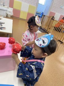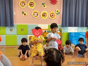 先日安曇野園では、夏祭り会が行われました!夏祭り会の日を「今日夏祭り?明日?」と心待ちにしていた子ども達です😊