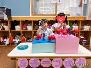 もも組のお友だちは少し難しかったので、保育者と一緒に手でヨーヨーを撮りました❣️