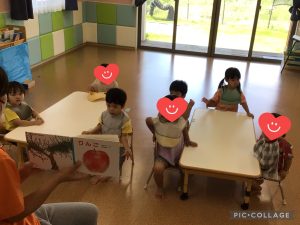 タイトルの通り、沢山のりんごが出てくるので、子ども達も「これもらったりんごといっしょだー!」と喜びながら見ていました🎵