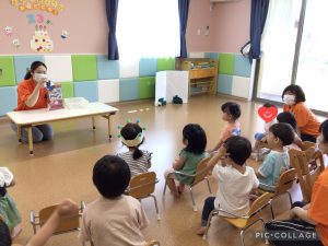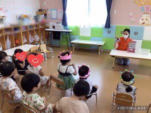 最後は保育者の出し物です!今回は「ガチャガチャクイズ」というシアターをみました。