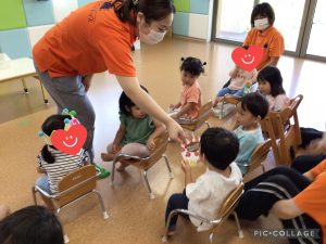 最後のカプセルでケーキが出てくると大喜び!お誕生日のお友だちはケーキを食べさせてもらい、「おいし〜」と嬉しそうでした🎂