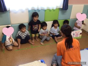 「あ、むしさん」という絵本を読みました。絵本の中に出てくる虫を見て、「あ、ありさん!」「てんとうむしさん!」と知っている虫の名前をみんなで言い会って楽しんでいましたよ✨