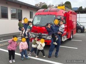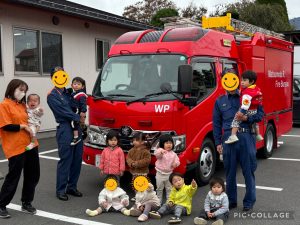 最後は消防士さんと一緒に消防車の前で写真を撮らせてもらいました!大好きな消防車と写真を撮る事ができ、とても嬉しそうな子ども達でした📸