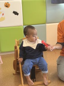 お菓子を渡して、お化けの格好じゃなくなると、ホッとした表情をしているお友だちでした😊