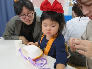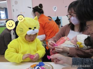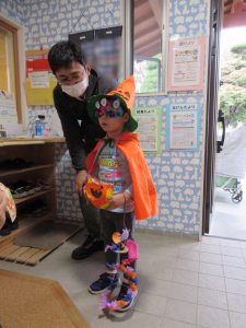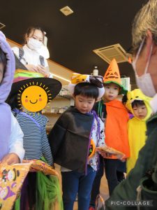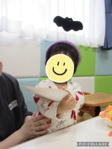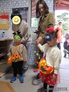 少しドキドキしながらもお友だちと一緒に「トリックオアトリート!」と言う事が出来ました😊