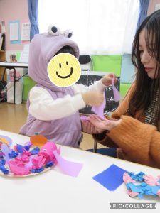 事前に千切った折り紙を自由に貼っていきます😊