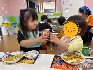園に戻ってからはみんなで給食を食べました!お姉さんたちと乾杯をして楽しく食べる事が出来ました🎵