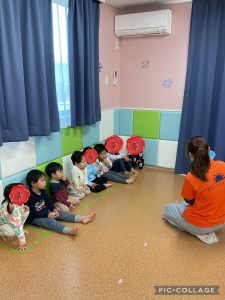 絵本を読む前にもも組さんお気に入りの手遊びの「りんごころころ」をやりました!