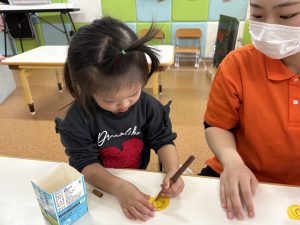 完成すると「ん!」と嬉しそうに保育者に見せてくれましたよ🤭