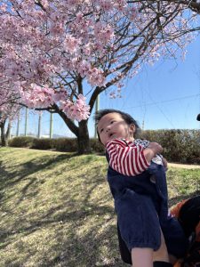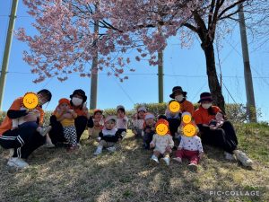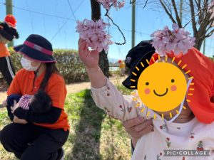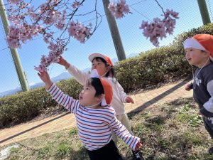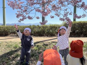 いちご組のお友だちも保育者に抱っこしてもらい、桜に触る事が出来ました🎵