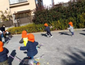 お正月制作で作った凧あげを楽しんでいる園もあります。