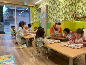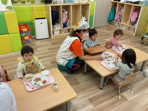 パクパクと食べる子、まだちょっと座るのに時間がかりそうな子