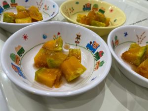 ひじきの煮物は、スプーンではすくいにくい食材です。子どもたちも食具の使い方が上手になってきて、ひじきもすくって食べられるようになってきています!