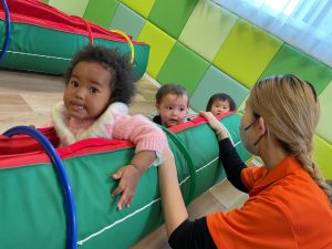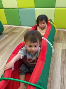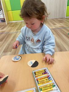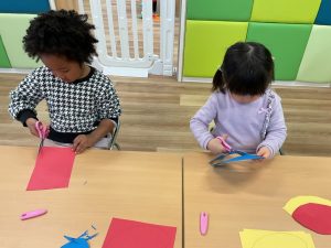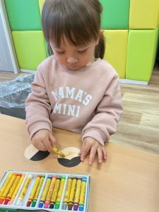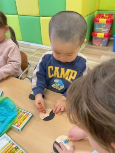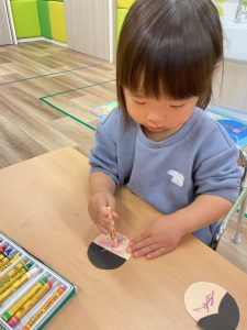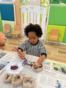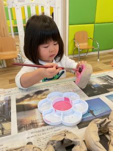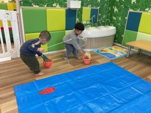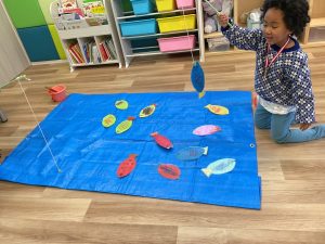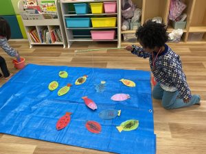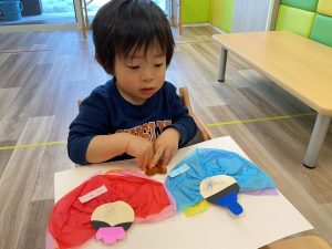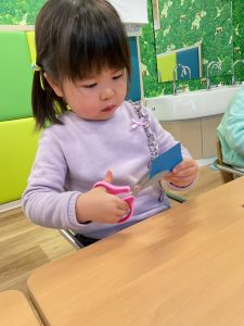 お魚釣り遊びに使うお魚さんを切っているみたいです🐟