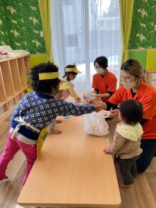 りんご組のお兄さん、お姉さんが一生懸命準備をして