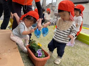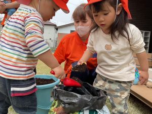 園庭の隅で大事に育てていきます