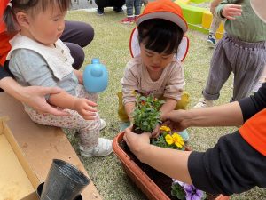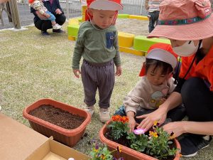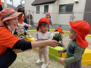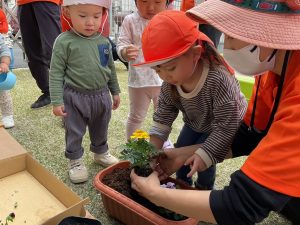 お芋に続きましてお花も植えました。