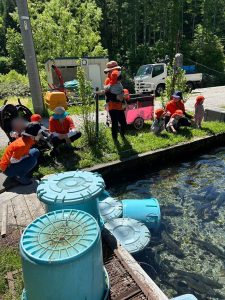 大出公園の近くの安曇野水産 白馬養殖所様までお散歩に行きました。