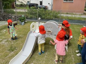 白馬園のお庭に新しい遊具が来ました✨