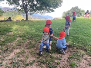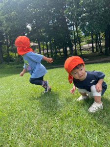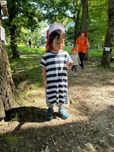 いちご組さんは木流川公園のラクダ山までお散歩です