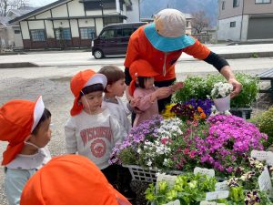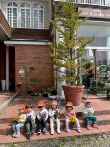 りんご組さんは園の近くのお花屋さんまで行って
