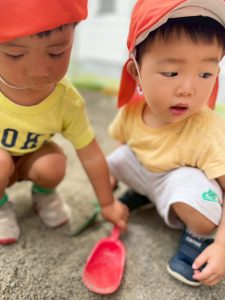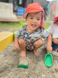 この日はみんなで元気にお砂場遊びです☺