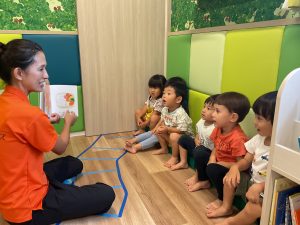 おへそはどーこー、ここ!と繰り返しが楽しくって、みんなニコニコ。