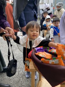 お菓子を入れる袋がパンパンになったところで、保育園に帰りまーす♪