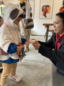 お菓子を入れる袋がパンパンになったところで、保育園に帰りまーす♪