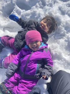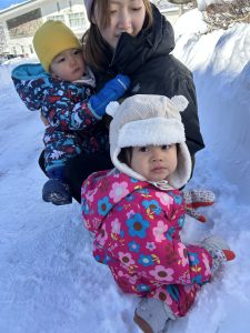 今年は冬の間、市民農園を雪遊び場にお借りできたので、ひろーい場所での雪遊びも始まりました。雪のブロックを積んだお家作り、雪山からの豪快なお尻滑りなど、楽しみいっぱい♡