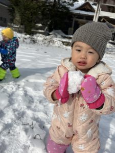 1月に入り昨年よりは少ないものの、白馬園の周りにも雪が積もり、子どもたちはウキウキワクワク♪