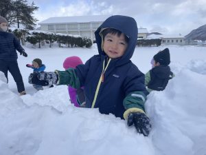1月に入り昨年よりは少ないものの、白馬園の周りにも雪が積もり、子どもたちはウキウキワクワク♪