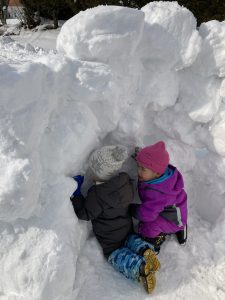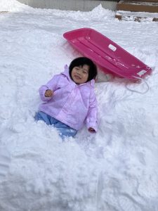 今年は冬の間、市民農園を雪遊び場にお借りできたので、ひろーい場所での雪遊びも始まりました。雪のブロックを積んだお家作り、雪山からの豪快なお尻滑りなど、楽しみいっぱい♡