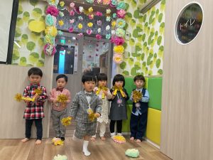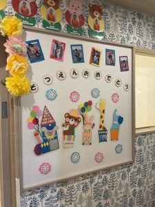 先生たちがこの日のために心を込めて園内を飾り付け、りんご組さんをお祝いします♡。