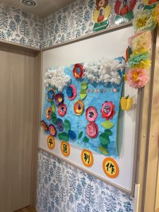 りんご組さんみんなで作った卒園制作も入り口に飾りました♪