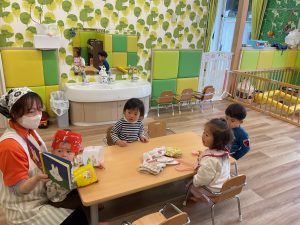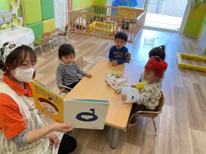おばけになるのー?とお話しに引き込まれる子どもたち。