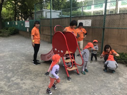 お天気の日は毎日近くの公園に行ってブランコや滑り台を保育士と一緒に楽しんでいます。