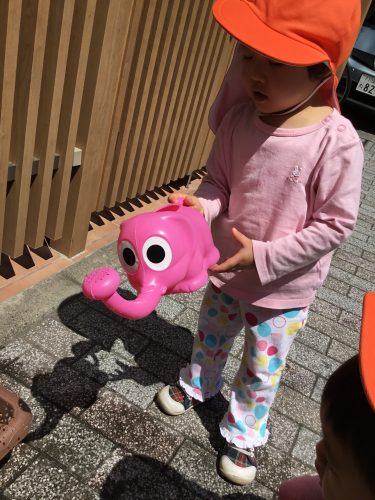 「あいこちゃんときいちゃんもお茶茶飲む?」と言いながら、ぞうさんジョウロでお水をあげてくれると~っても可愛らしいりんご組さんのおともだちです