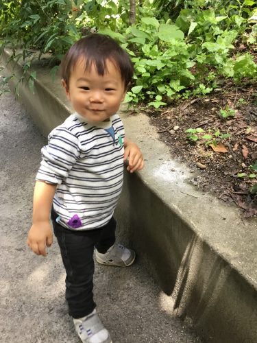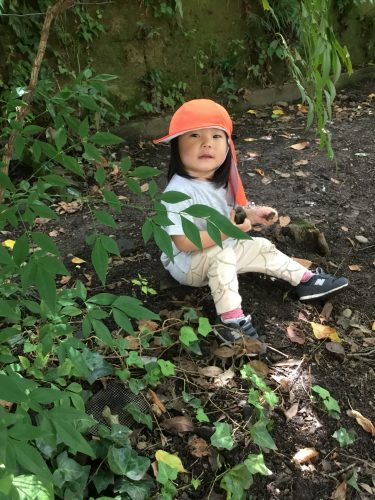 梅雨もお休みでおひさまの日は近くの大好きな公園に行って木々の中を楽しそうに探索活動