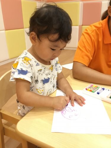 日に日に筆圧も強くなりクレヨンの箱から「どれにしようかな~?」と言う姿も見られる様になりました![]()