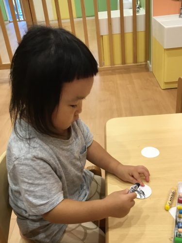 いちご組さんは、とんぼの羽をクレヨンでぬりぬり~