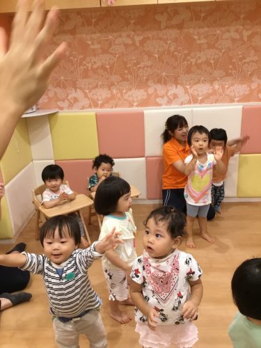 お歌に合わせて、手を大きく広げたり、小さくしたりと大好きな先生の真似っこ![]()