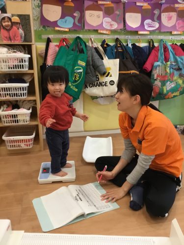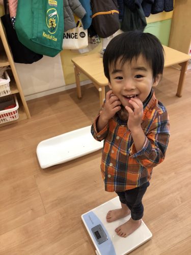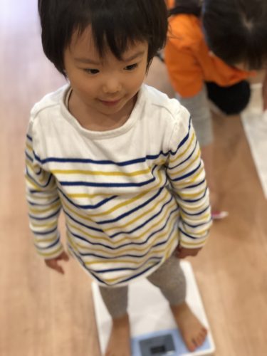 本日、金曜日には“身体測定”を行いました。もうすっかり、測定にも慣れて、「どれくらいおおきくなったかな~。」と保育者の言葉を聞きながら、ニコニコ