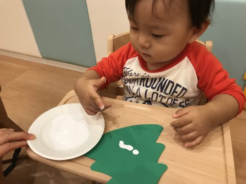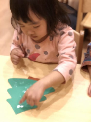 親子クリスマス会に向けて歌う”うさぎのはらのクリスマス”というとても可愛らしいお歌の練習や保育室の中を飾る製作物等嬉しそうに準備を進めています(*^^*)