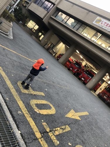 」と見入ってしまいました。「乗りたいね~」「消防自動車好き~」と何分でも見ていたいカッコイイ消防自動車!でもそろそろ、さよならのお時間が、、、「また来るね~