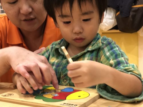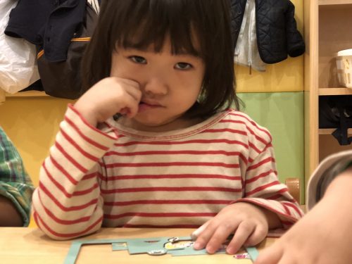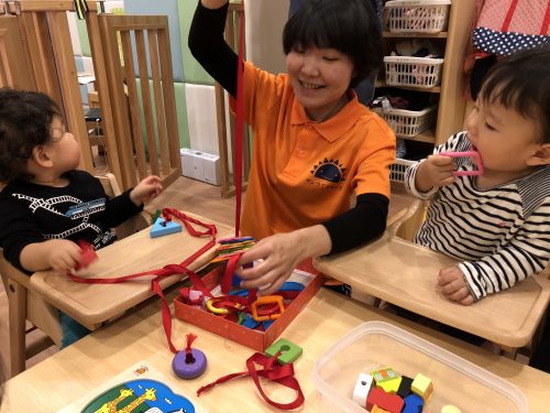 最近白山園のお子様達は”手先や指先を使うパズル”と”ひもとうし”が大好きです。「どこにパズル置こうかな~」と考えて、、
