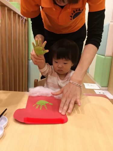 」とうれしそうにおはなしをしながら赤いサンタさんのブ-ツに可愛らしい装飾をして完成![]()