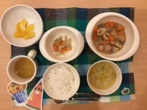 ★照り焼きチキン ★スパゲティーソテー野菜 ★さつまいも甘煮 ★ご飯 ★みそ汁 ★お茶