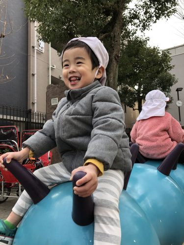 公園から戻ると小さな頬っぺたはリンゴ
