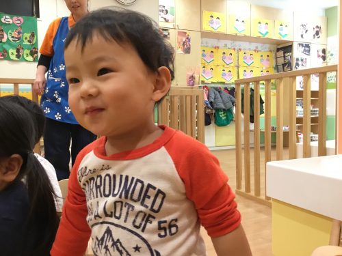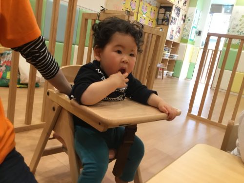 今月のお誕生日のお友だちは、ブロックで電車や車を作ることの大好きな1歳児クラスの男の子です。今大好きな言葉は「〇〇〇お兄ちゃん!」です。もも組さんのお友達に自分のブロックで作った電車を貸してくれたり、頭を「いい子いい子♪」と撫でてくれたるする優しいお兄ちゃんです。お給食もいつも沢山食べてくれます。そして最高の笑顔で「おいしい~
